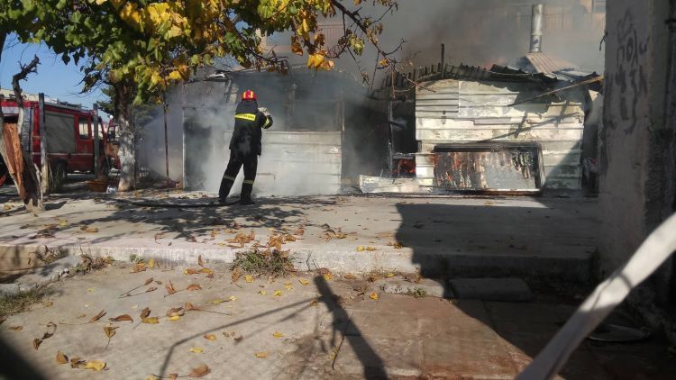Πανικός από πυρκαγιά σε λυόμενη οικία Ρομά δίπλα στο Αστυνομικό Μέγαρο Αγρινίου