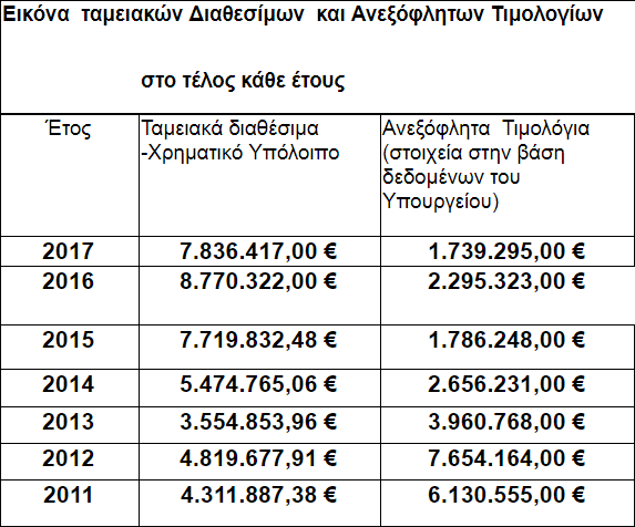 Καταφέραμε να αντιστρέψουμε τα στοιχεία αυξάνοντας τα ταμειακά διαθέσιμα και μειώνοντας δραστικά τις υποχρεώσεις του Δήμου (ανεξόφλητα τιμολόγια). Αποδείξαμε ότι οι ισχυρισμοί Μοσχολιού, για δημοπρατημένα έργα εκατομμυρίων ευρώ, ήταν μόνο για την δημιουργία εντυπώσεων. Κληθήκαμε να πληρώσουμε χρέη και δάνεια των προκατόχων μας. Και τα καταφέραμε. Δώσαμε εικόνα νοικοκυρέματος που πηγάζει από την συντονισμένη προσπάθεια της δημοτικής Αρχής και των Υπηρεσιών του Δήμου. Συνεχίζουμε την προσπάθειά μας».