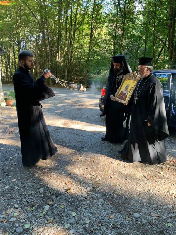 Ο ιερατικώς προϊστάμενος της Ενορίας Αγίων Πάντων Μονάχου Αρχιμανδρίτης Γεώργιος Σιώμος και ο Πρωτοπρεσβύτερος Απόστολος Μαλαμούσης μετέφεραν την εικόνα της Αγίας και στα πλαίσια μιας σύντομης τελετής την επέδωσαν στον ρωμαιοκαθολικό ιερέα κ. Josef Steinberger και την τοποθέτησαν στο εσωτερικό του παρεκκλησίου.