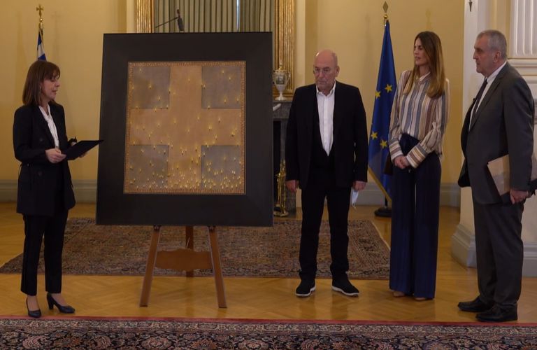 Παράδοση του πίνακα «Έξοδος» του Αγρινιώτη Χρήστου Μποκόρου στην Πρόεδρο της Δημοκρατίας