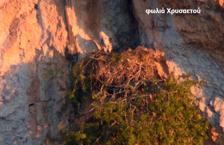 Σε άλλη ορθοπλαγιά του Αρακύνθου είχαμε και φώλιασμα ενός ζευγαριού Χρυσαετών που κατάφερε και ανέθρεψε ένα Χρυσαετόπουλο. Όταν ο νεοσσός άρχισε να σηκώνεται στα πόδια του καλά, να περπατά μέσα στη φωλιά και να τσιμπολογά κλαδάκια κι υπολείμματα τροφής, οι γονείς του άρχισαν να μένουν μεγάλο διάστημα της ημέρας εκτός φωλιάς.