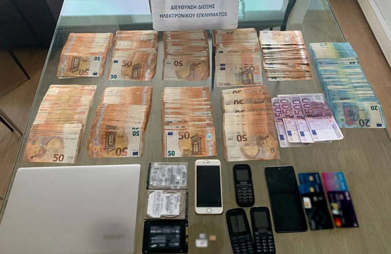 Σημειώνεται, ότι σε έρευνα, που διενεργήθηκε στο σπίτι τού κατηγορούμενου, στην Αττική, βρέθηκαν και κατασχέθηκαν φορητός ηλεκτρονικός υπολογιστής, δύο εσωτερικοί σκληροί δίσκοι και εξωτερικός σκληρός δίσκος, πέντε κινητά τηλέφωνα και έντεκα κάρτες SIM, έξι τραπεζικές κάρτες και 46.150 ευρώ επιμελώς κρυμμένα.