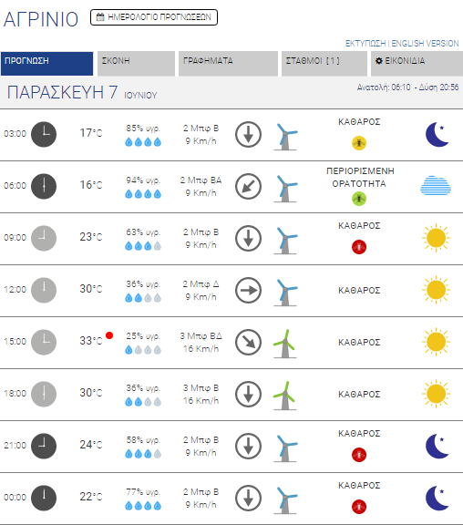 Στην Αττική αναμένεται ηλιοφάνεια. Οι άνεμοι θα πνέουν από βόρειες διευθύνσεις έως 3 μποφόρ. Η θερμοκρασία στο κέντρο των Αθηνών θα κυμανθεί από 22 έως 31 βαθμούς.