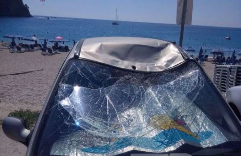 Λόγω ισχυρών ανέμων, δεν μπόρεσε να προσγειωθεί στην άμμο και προσγειώθηκε σε οροφή αυτοκινήτου. Κάτι που δημιούργησε μεγάλο πρόβλημα στο σταθμευμένο αυτοκίνητο στην πολυσύχναστη παραλία.