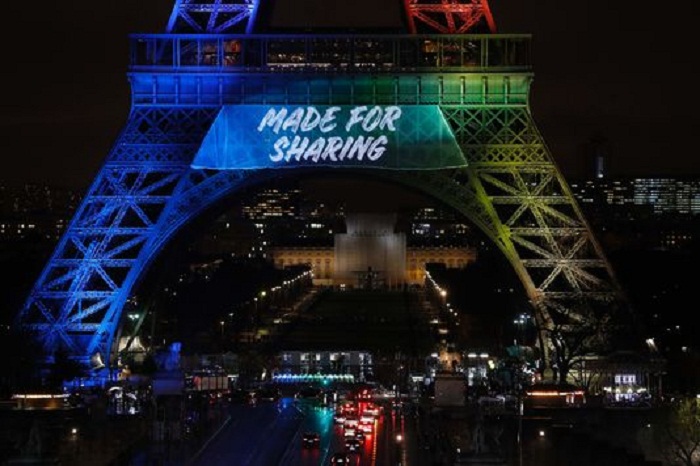 Εντυπωσιακός, όπως αναμενόταν, ήταν ο «στολισμός» του Πύργου του Άιφελ. Το σπουδαίο μνημείο του Παρισίου φωτίστηκε στα χρώματα του πρότζεκτ και με φαντασμαγορικό τρόπο παρουσίασε το σλόγκαν «Made for sharing».