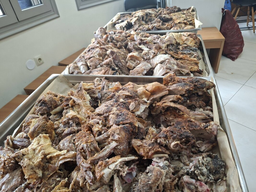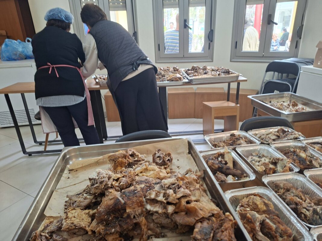 Πάσχα 2026 στα συσσίτια του Αγίου Δημητρίου Αγρινίου με 15 αρνιά τα οποία ψήθηκαν και προέκυψαν 183 μερίδες και 4 για τα κρατητήρια της Αστυνομίας.