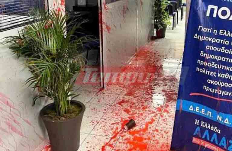 Σύμφωνα με τις πρώτες πληροφορίες τέσσερα άτομα τα οποία αναζητούνται από την Αστυνομία, εισέβαλλαν στα γραφεία του κόμματος (στον 4ο όροφο), τα οποία ήταν ανοιχτά μιας και σε λίγη ώρα ήταν προγραμματισμένη συνεδρίαση της ΔΕΕΠ Αχαΐας και πέταξαν μπογιές, ενώ προκάλεσαν και ζημιές.