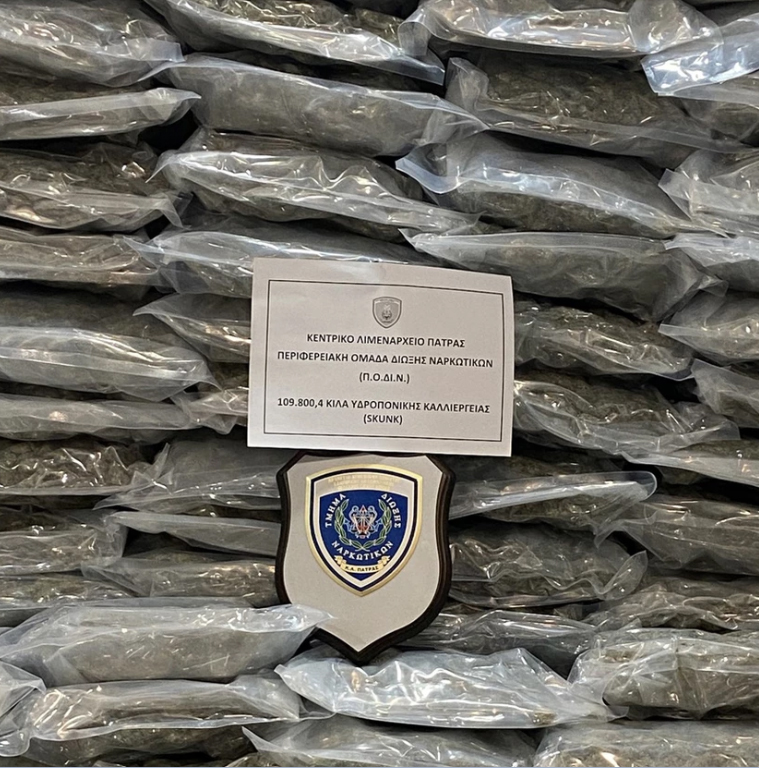 Από το Κεντρικό Λιμεναρχείο Πάτρας που διενεργεί την προανάκριση, κατασχέθηκαν οι ανωτέρω ποσότητες ναρκωτικών ουσιών, τα δύο Φ/Γ οχήματα (τράκτορες), ένα (01) επικαθήμενο, ένα (01) Ε.Ι.Χ. όχημα, πέντε (05) συσκευές κινητής τηλεφωνίας καθώς και το χρηματικό ποσό των δέκα έξι χιλιάδων εκατό ευρώ (16.100)».
