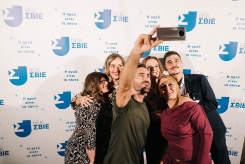 Δεκάδες Selfies έβγαλε στην εκδήλωση ο Γιάννης Αποστολάκης με Σπουδαστές και καλεσμένους. Εδώ με την Ομάδα του Ι.Ε.Κ. Σ.Β.Ι.Ε. στην Πάτρα