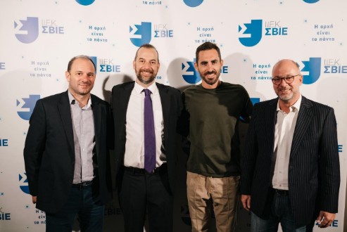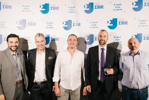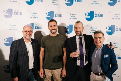Η Διοίκηση του Ι.Ε.Κ. Σ.Β.Ι.Ε. μαζί με τους συνεργάτες Marketing του Ομίλου. (Από αριστερά προς τα δεξιά) Θανάσης Νίκου (Διευθυντής Ι.Ι.Ε.Κ. Σ.Β.Ι.Ε. Πάτρας), Δημήτρης Γρατσίας (Διευθυντής Ι.Ι.Ε.Κ. Σ.Β.Ι.Ε. Αθήνας), Φίλιππος Κεφαλόπουλος (Prime Marketing), Νίκος Καστρινάκης (Γενικός Διευθυντής Ι.Ι.Ε.Κ. Σ.Β.Ι.Ε.), Γιώργος Καραμήτσος (FYI Marketing House)