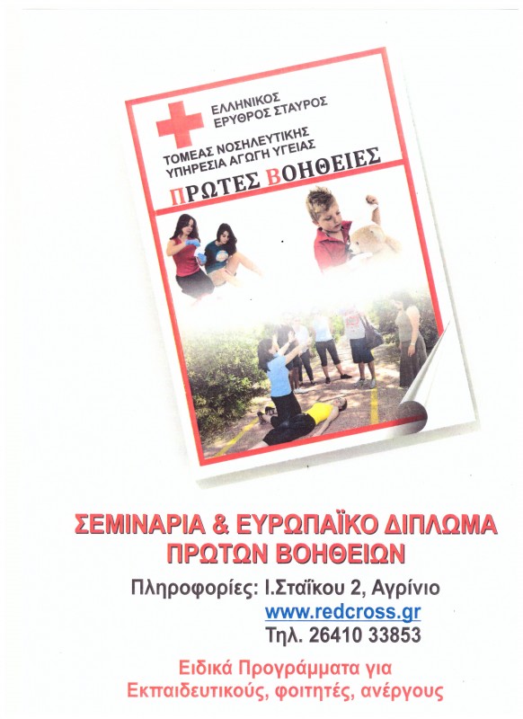 Σεμινάρια και ευρωπαϊκό δίπλωμα πρώτων βοηθειών από το Περιφερειακό Τμήμα Αγρινίου του Ελληνικού Ερυθρού Σταυρού.