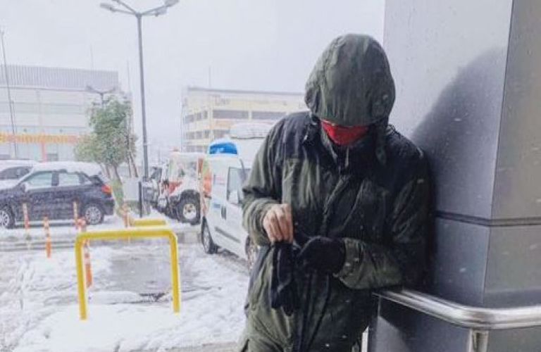 Ο ηθοποιός Κώστας Κρομμύδας ντύθηκε ζεστά, φόρεσε κουκούλα λόγω του χιονιά, μάσκα προστασίας για τον κορονοϊό και συνόδευσε την σύζυγό του στο σούπερ μάρκετ μαζί με το σκυλάκι τους.