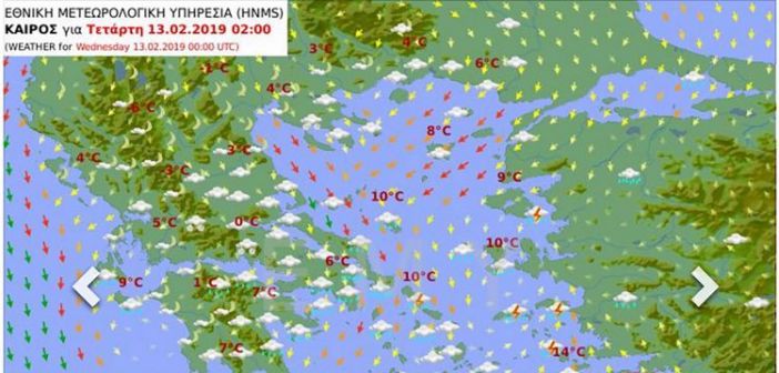 Το Έκτακτο Δελτίο Επιδείνωσης Καιρού της ΕΜΥ/ΕΜΚ (4/2019), που ισχύει από Τετάρτη 13-02-2019 μέχρι και την Πέμπτη 14-02-2019 και δημοσιοποιήθηκε από τη Γενική Γραμματεία Πολιτικής Προστασίας, προβλέπει επιδείνωση του καιρού από την Τετάρτη 13-02-2019 με κύρια χαρακτηριστικά:
