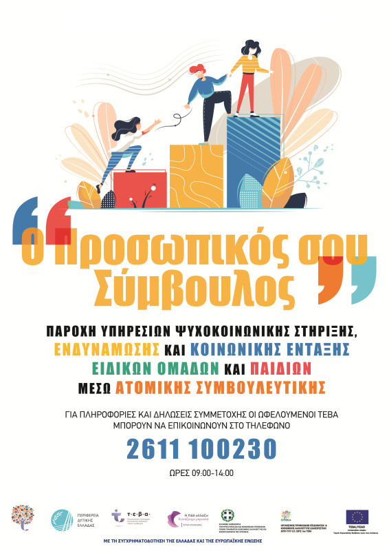 Περιφέρεια Δ. Ελλάδας: «Ο Προσωπικός σου Σύμβουλος» για ωφελούμενους Τ.Ε.Β.Α.