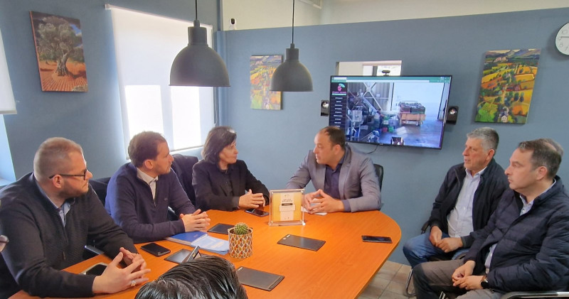 Στη Σταμνά όπου παράγεται βιολογική πιστοποιημένη επιτραπέζια ελιά που ξεπερνά τους 800 τόνους ετησίως, συνομίλησε με τον Πρόεδρο Γιώργο Μιμμή και εκπροσώπους της 20μελούς Ομάδας Παραγωγών Ελιάς.