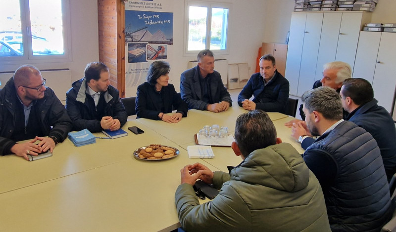 Στο Μεσολόγγι, στη συνάντηση με τον Διευθύνοντα Σύμβουλο της «Ελληνικές Αλυκές Α.Ε.» Αντώνη Δουμάνογλου, τον Αντιπρόεδρο Νίκο Κότσαλο και τον Διευθυντή Γιώργο Κωστόπουλο, ενημερώθηκε για τη δραστηριότητα της Εταιρίας και τις δυνατότητες περαιτέρω εκσυγχρονισμού και ανάπτυξης.