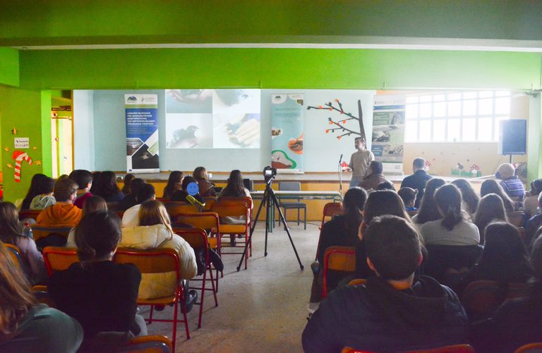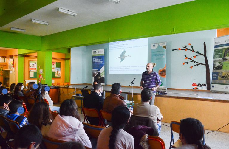 Τέλος, ο κ. Νικόλαος Νούλας από την Εθελοντική ομάδα Ορνιθοπαρατηρητές Μεσολογγίου και συνεργάτης της Ελληνικής Ορνιθολογικής Εταιρείας, παρουσίασε στους μικρούς μαθητές τους τρόπους με τους οποίους μπορούμε όλοι μας σαν πολίτες να βοηθήσουμε στη διατήρηση των ειδών χελιδόνι, κιρκινέζι, λευκός πελαργός.