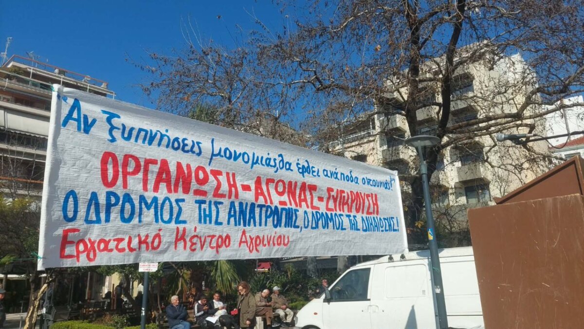 Εκπρόσωποι του Εργατικού Κέντρου που διοργάνωσε την κινητοποίηση και Σωματείων Εργαζομένων, Φοιτητές, Μαθητές και Δημότες ήταν εκεί από νωρίς…