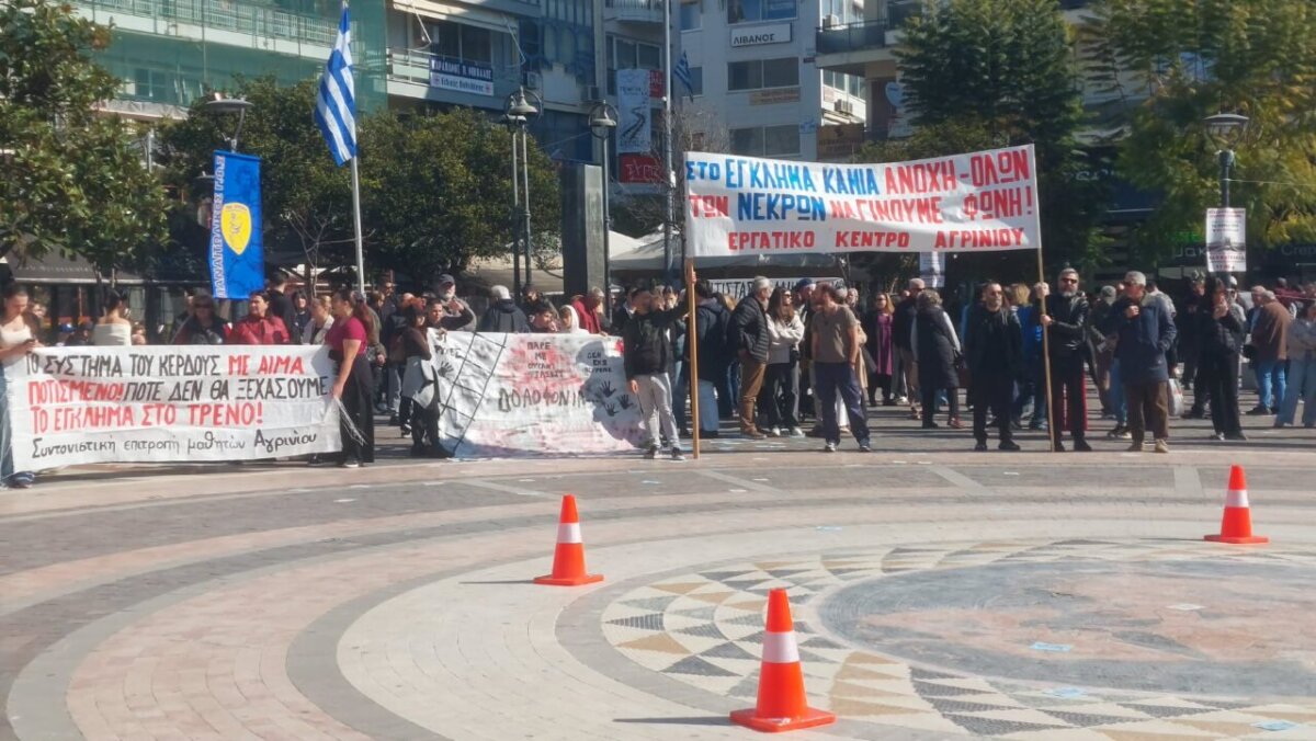 Πλατεία Δημοκρατίας: Συλλαλητήριο από το Εργατικό Κέντρο Αγρινίου για τα 3 χρόνια από την Τραγωδία των Τεμπών