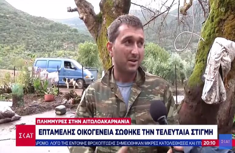 Αποκαρδιωτικές οι εικόνες που αντικρίζει κανείς από το ρεπορτάζ της τηλεόρασης του ΣΚΑΪ -το οποίο και προβλήθηκε το βράδυ του Σαββάτου- στο χωριό Αβαρίκος, στην Αιτωλοακαρνανία καθώς επταμελής οικογένεια (γιος, γυναίκα, τρία παιδιά, παππούς και γιαγιά) σώθηκε την τελευταία στιγμή.