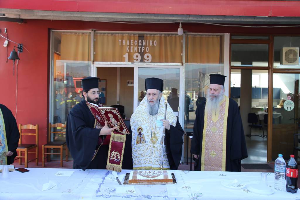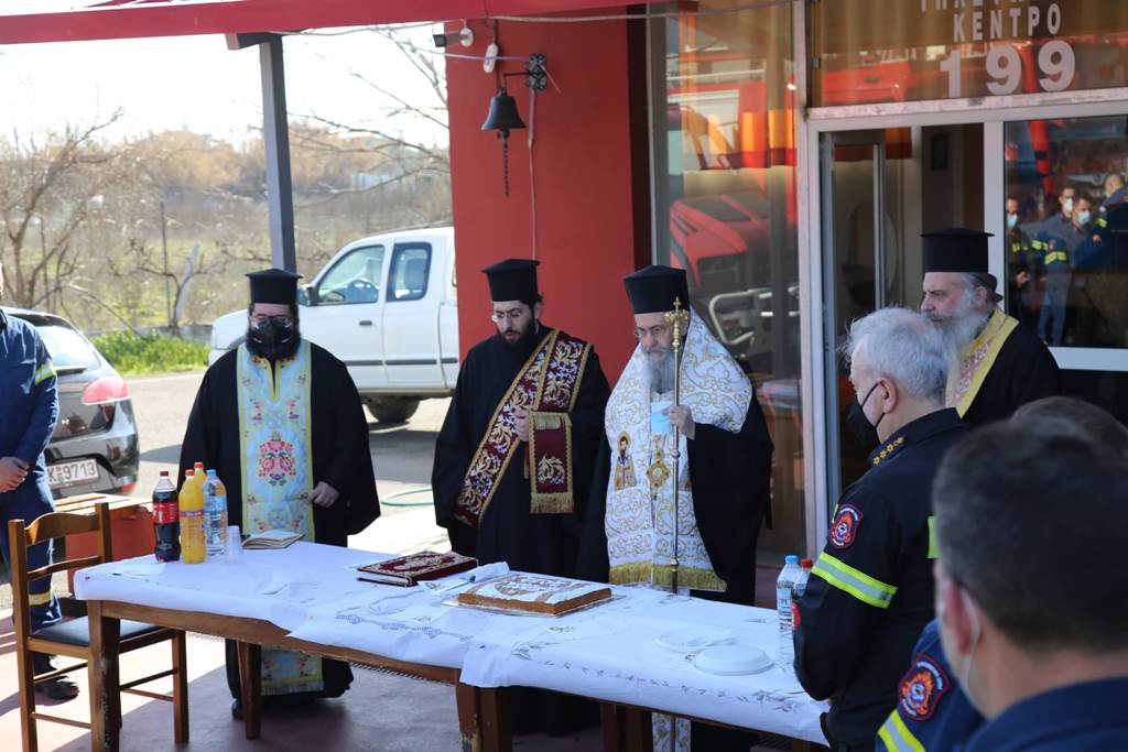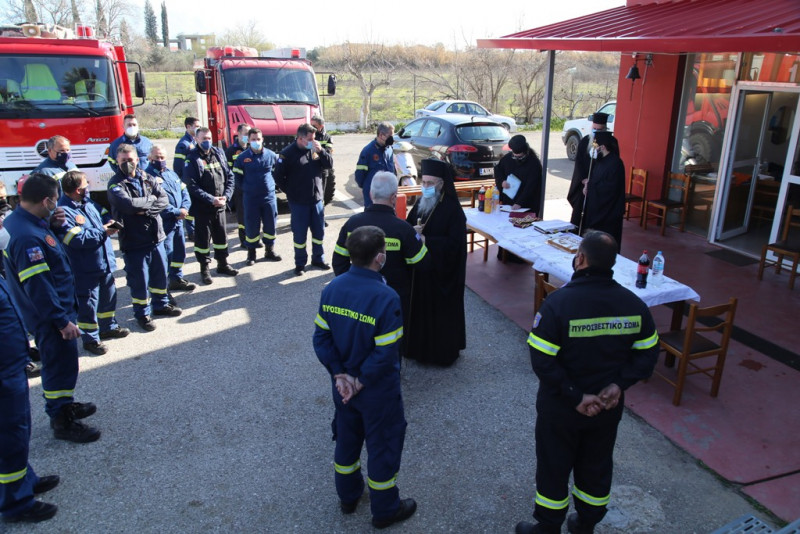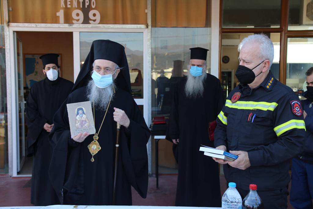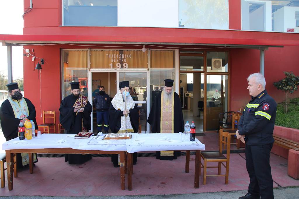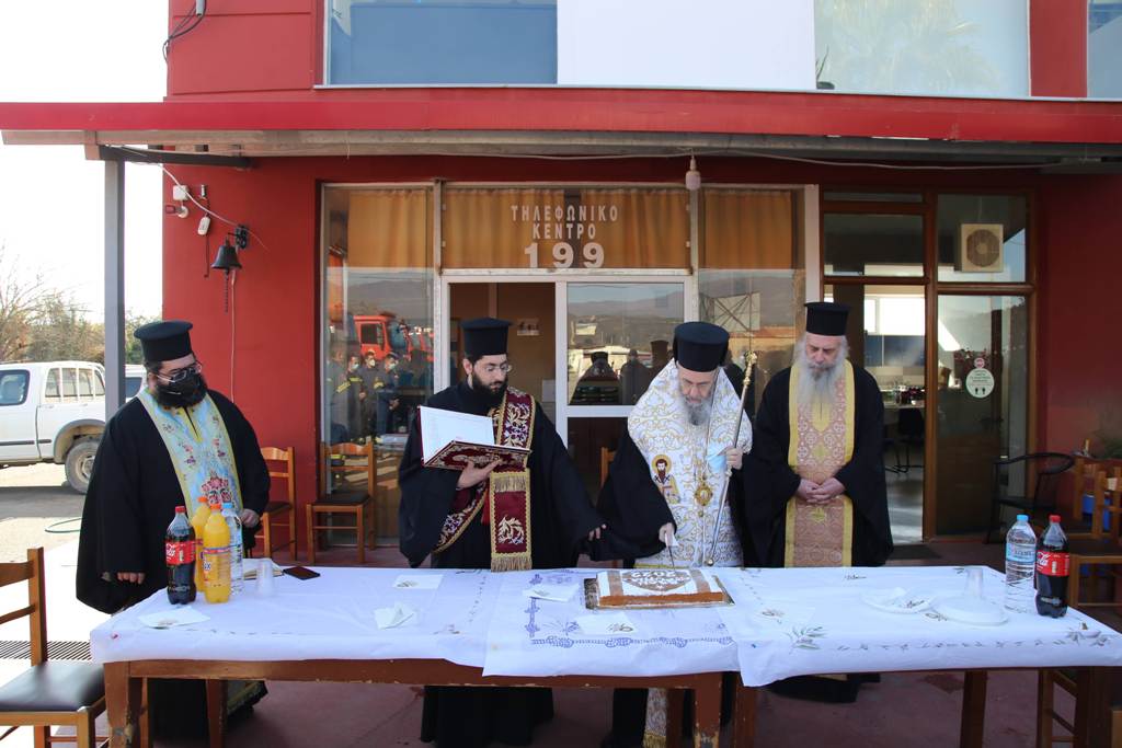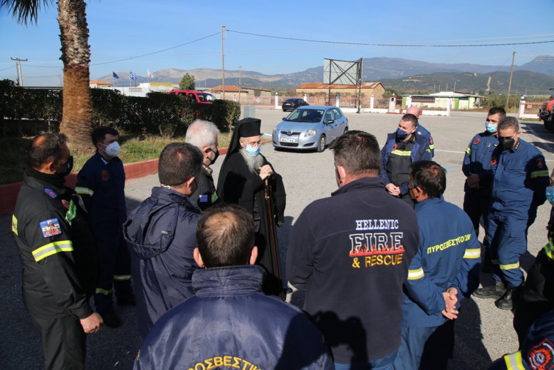 Ο Σεβασμιώτατος ευχήθηκε καλή χρονιά σε όλο το προσωπικό και εξήρε το έργο των πυροσβεστών οι οποίοι δεν σβήνουν μόνο τις φωτιές που ανάβουν άλλοι, αλλά καλούνται να αντιμετωπίσουν πάρα πολλά και διαφορετικά περιστατικά καθημερινά, υπερβαίνοντας πολλές φορές τον εαυτό τους. Για τον λόγο αυτό, όπως είπε, ανταποκρίθηκε στην πρόσκλησή τους γιατί ήθελε με την παρουσία του να τους τιμήσει και να τους ευχηθεί προσωπικά στην αρχή της νέας χρονιάς.