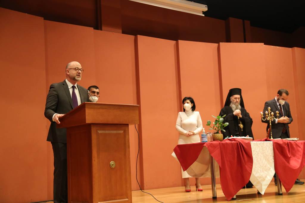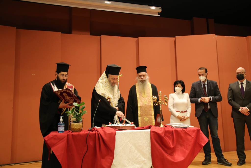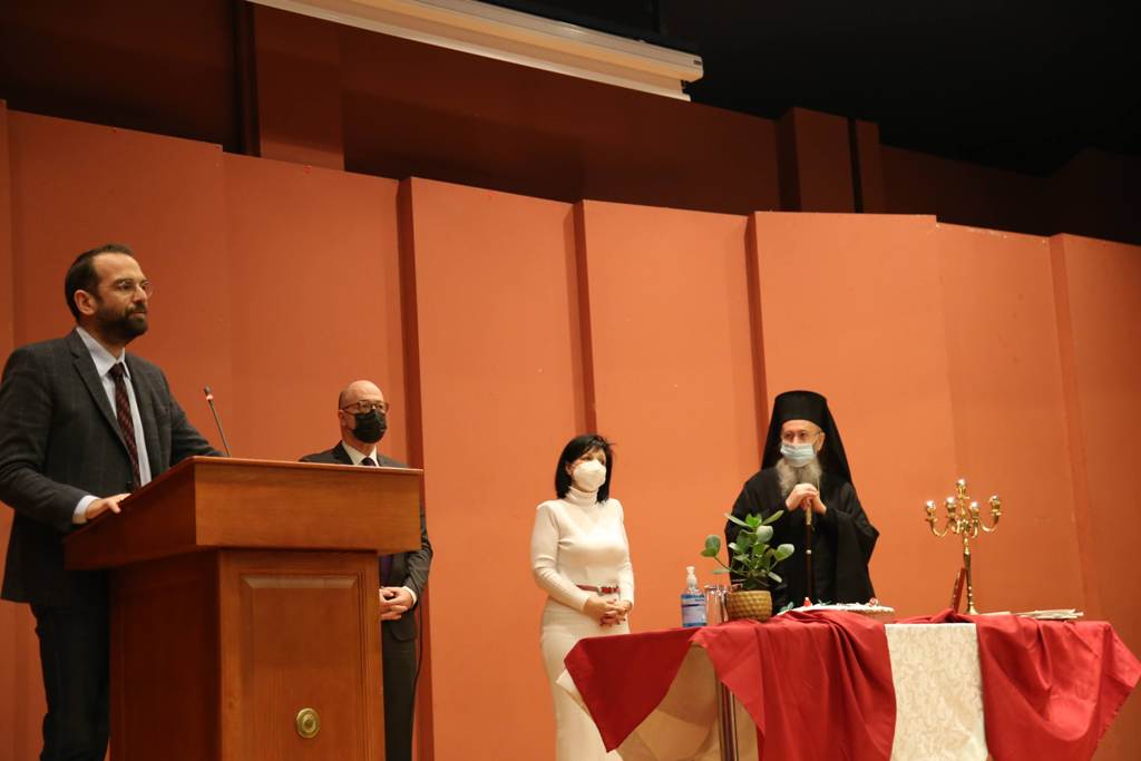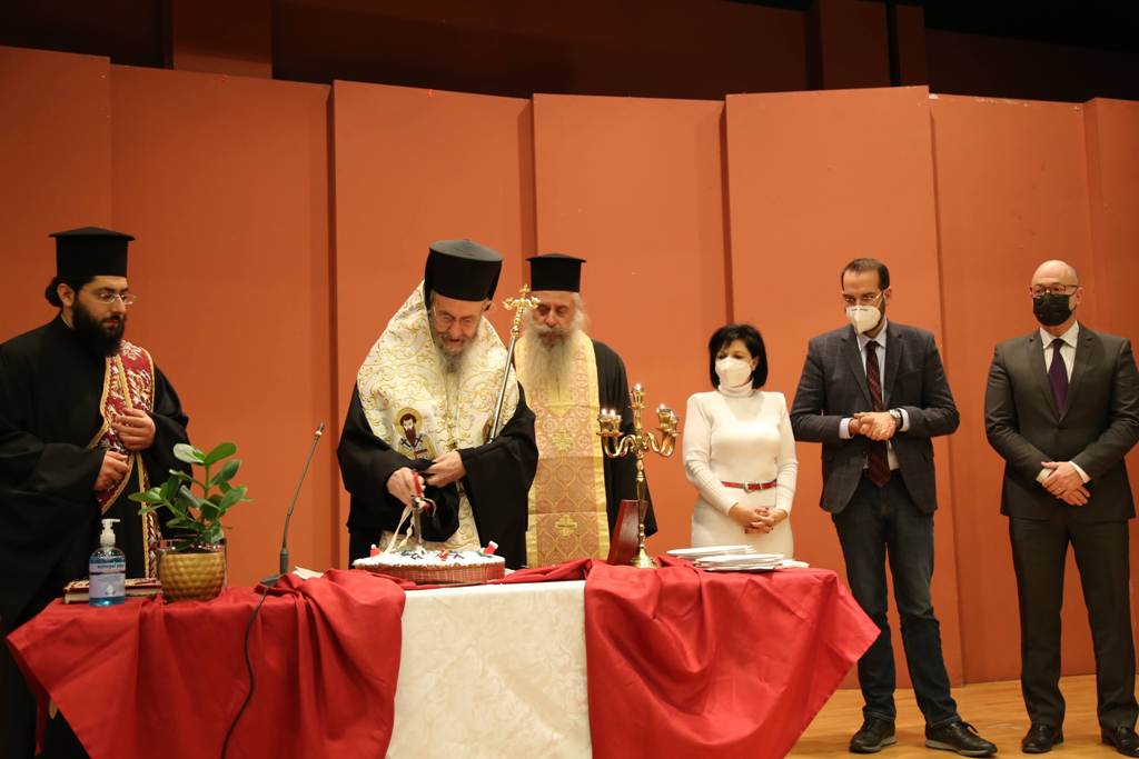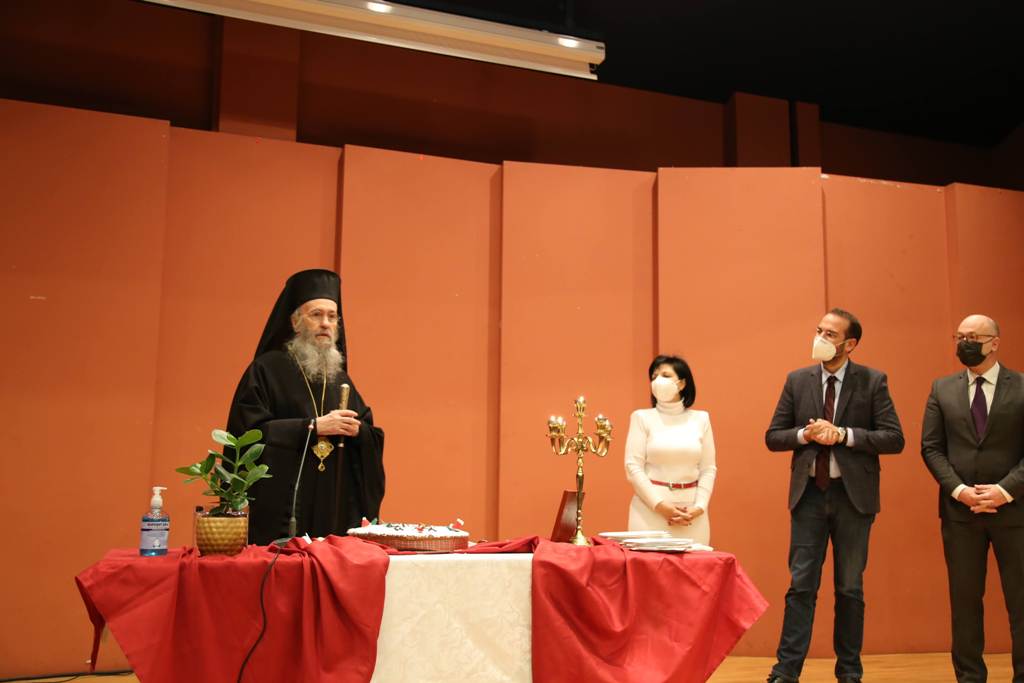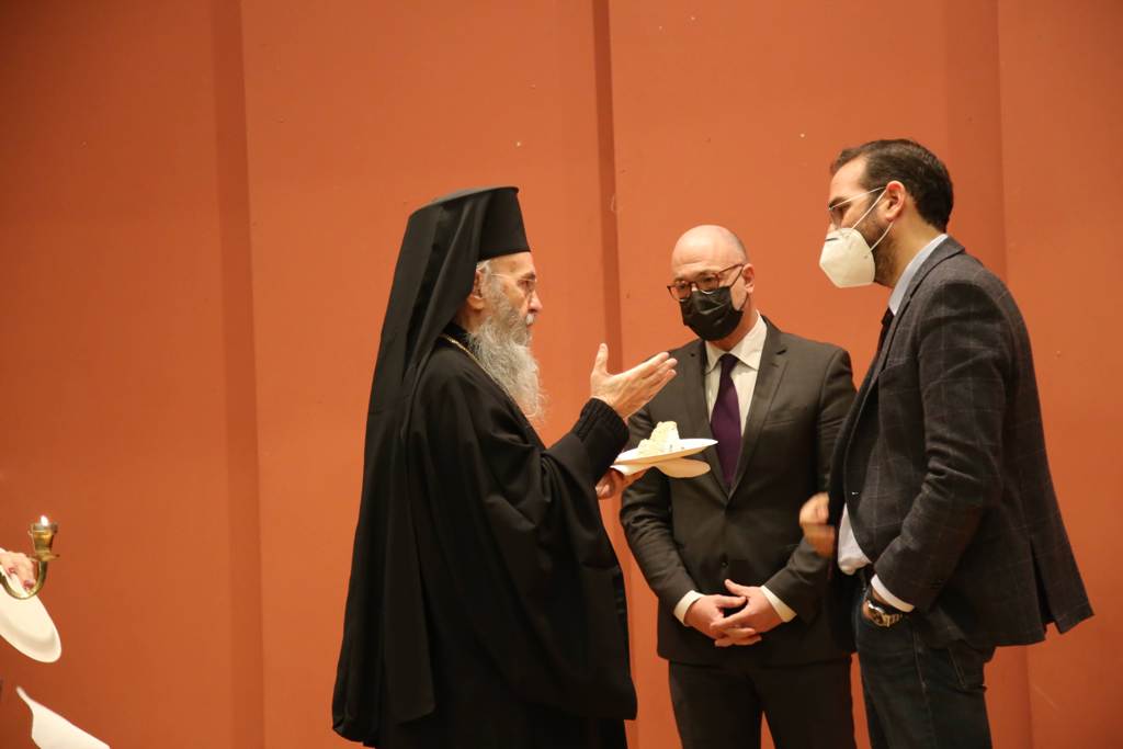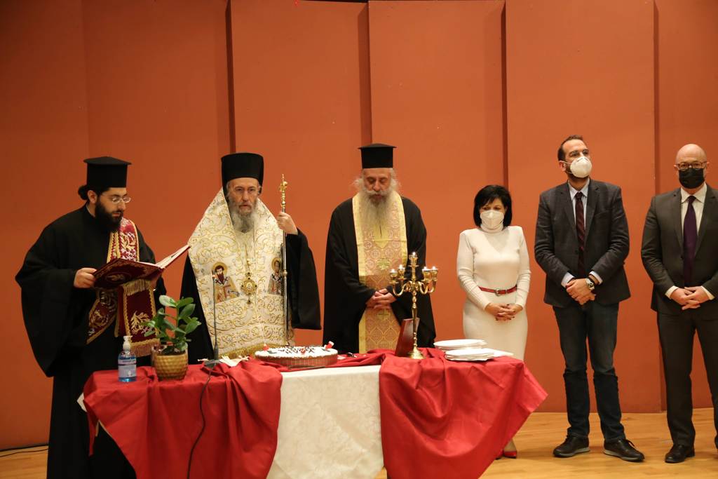 Ο Σεβασμιώτατος, κατά τον χαιρετισμό του, αναφέρθηκε στην καλή συνεργασία που υπάρχει μεταξύ εκκλησίας και πολιτείας καθώς αμφότερες οι πλευρές γνωρίζουν πολύ καλά ότι άλλα είναι τα όρια της εκκλησίας και άλλα της πολιτείας, άλλα τα όρια της επιστήμης και άλλα της θεολογίας, έχοντας και οι δύο κοινή αναφορά τον άνθρωπο. Ευχήθηκε στους παρισταμένους καλή χρονιά, με υγεία και δύναμη και τη νέα χρονιά, με τη χάρη του Θεού, να καταφέρουμε να ξεπεράσουμε τον κορωονοϊό, η πανδημία αυτή να γίνει επιδημία και όλοι να βρίσκουμε τον τρόπο να υπερβαίνουμε τον χώρο, τον χρόνο, αλλά και όλα τα προβλήματα.