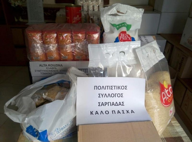Την Παρασκευή, 10 Απριλίου 2020 ο Πολιτιστικός Σύλλογος Σαργιάδας επισκέφθηκε τη δομή συσσιτίων του Ι.Ν Αγίου Δημητρίου Αγρινίου όπου τον υποδέχθηκε ο πατήρ Κωνσταντίνος Καντάνης ώστε να συνεισφέρει απ’ την πλευρά του με τρόφιμα.