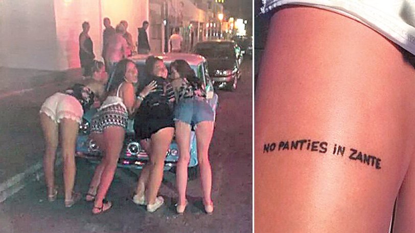 «Ξεβράκωτοι στη Ζάκυνθο» γράφει το τατουάζ στο μηρό της νεαρής τουρίστριας