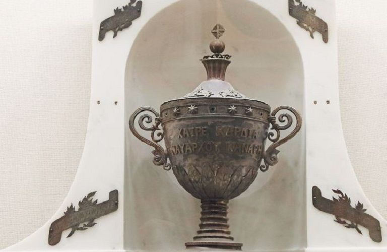 Η καρδιά του Κανάρη φυλάσσεται με ευλάβεια για να θυμίζει στους Έλληνες την υποχρέωσή τους να διαφυλάσσουν την εθνική κυριαρχία, αλλά και τους στίχους του Αχιλλέα Παράσχου: