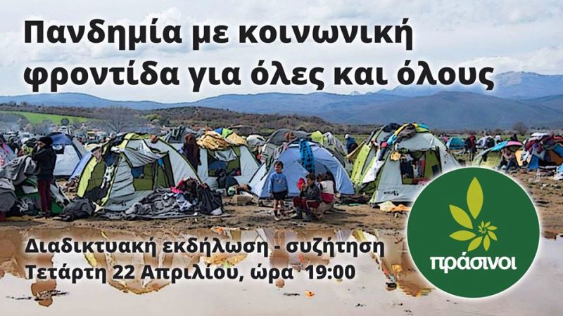 Ζητήματα όπως τα παραπάνω, αλλά και ζητήματα που προκύπτουν ειδικότερα από τη σημερινή υγειονομική κρίση, θα συζητηθούν σε μια ψηφιακή εκδήλωση των Πράσινων, με στόχο την ενημέρωση αλλά και κυρίως την ανάδειξη απαντήσεων στο πρόβλημα.
