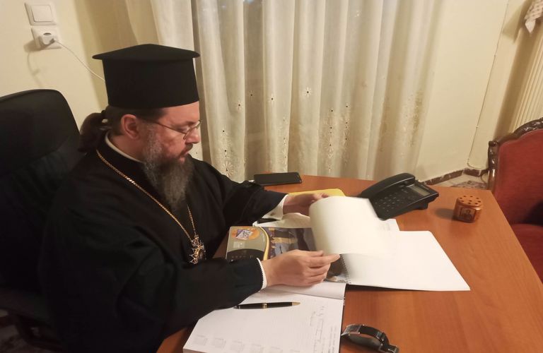 Ο Σεβασμιότατος δέχτηκε με πολύ χαρά το δώρο που του προσέφεραν, το Ημερολόγιο του 2023, που εξέδωσε η Α.Μ.Κ.Ε. και μάλιστα έδειξε ιδιαίτερο ενδιαφέρον λέγοντας ότι θα στηρίξει οποιαδήποτε κίνηση που θα έχει σχέση με την προβολή του τόπου.