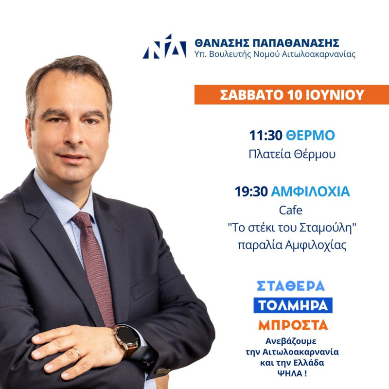 Πρόσκληση Θανάση Παπαθανάση στις συναντήσεις του με πολίτες σε Θέρμο και Αμφιλοχία