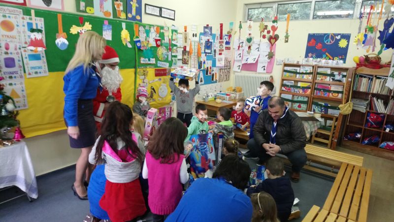 Η Αρχηγός του 1ου συστήματος Προσκόπων Αγρινίου μαζί με βαθμοφόρους του συστήματος και με συνοδεία τον πρόεδρο της επιτροπής, μοίρασαν δώρα στα παιδιά του νηπιαγωγείου, της Α’, Β’ και Γ’ τάξης του δημοτικού σχολείου. Τα παιδιά από την πλευρά τους γέμισαν χαρά βλέποντας τον Αη Βασίλη, και πλημμύρισαν οι αίθουσες με χαμόγελα και αισιοδοξία.