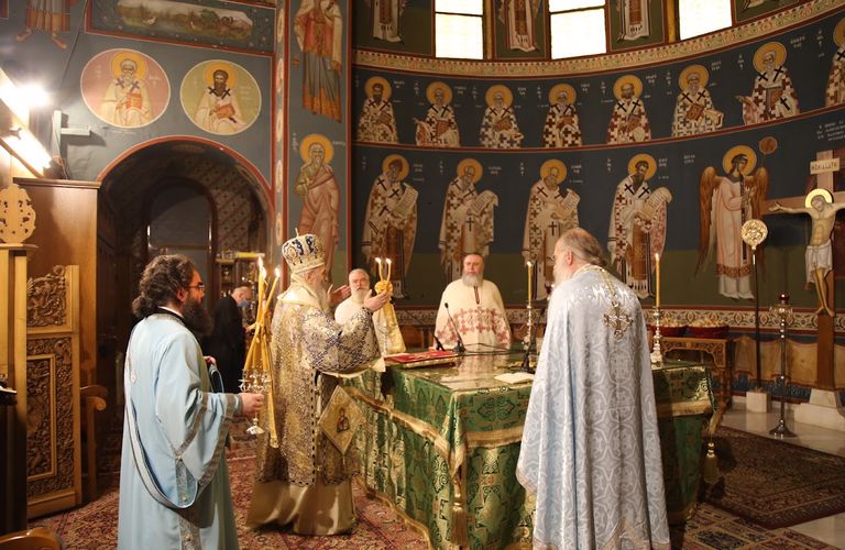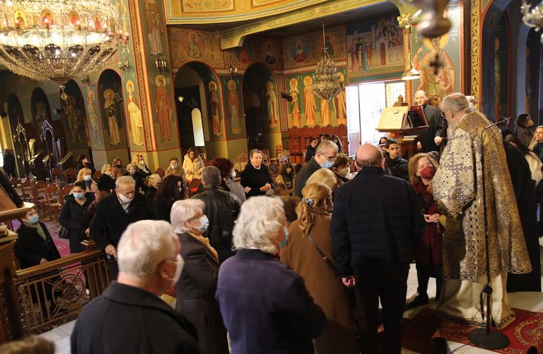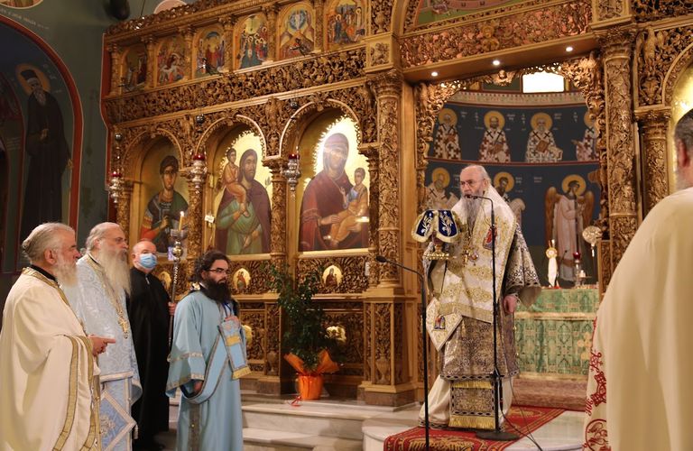 Στό τέλος τῆς θείας Λειτουργίας εὐχαρίστησε τούς Κληρικούς, τούς Ψάλτες, τούς Ἐπιτρόπους τούς ἐκκλησιασθέντας, πού τήρησαν τά μέτρα γιά τήν ἀποφυγή τῆς διάδοσης τοῦ κορωνοϊοῦ, θυμήθηκε ὅτι ὡς μαθητής Γυμνασίου ἐκκλησιαζόταν στόν Ἱερό αὐτόν Ναό, καθώς, ἐπίσης, ἀναφέρθηκε στόν παπα Ἀποστόλη Φαφούτη, πού ἀνοικοδόμησε τόν Ἱερό Ναό, καί ὑπῆρξε ἕνας φωτεινός Ἱερέας τῆς Πόλεως τοῦ Ἀγρινίου.