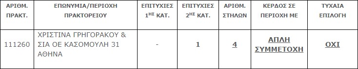 Επίσης στην δεύτερη κατηγορία (6) βρέθηκε ένα (1) τυχερό δελτίο που κερδίζει το ποσό των € 25.000,00.