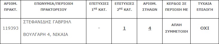 Επίσης στην δεύτερη κατηγορία (6) βρέθηκε ένα (1) τυχερό δελτίο που κερδίζει το ποσό των € 25.000,00.