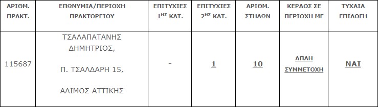 Επίσης στην δεύτερη κατηγορία (6) βρέθηκε ένα (1) τυχερό δελτίο που κερδίζουν το ποσό των € 25.000,00.