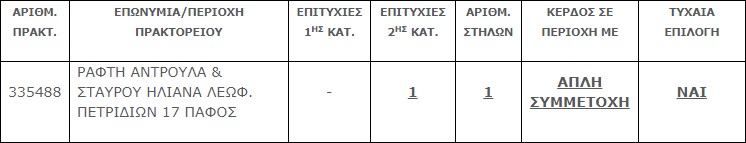 Επίσης στην δεύτερη κατηγορία (6) βρέθηκε ένα (1) τυχερό δελτίο που κερδίζει το ποσό των € 25.000,00.