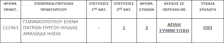 Επίσης στην δεύτερη κατηγορία (6) βρέθηκε ένα (1) τυχερό δελτίο που κερδίζει το ποσό των € 25.000,00.