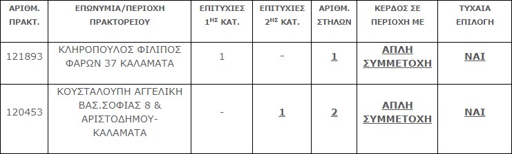 Επίσης, ένα (1) τυχερό δελτίο βρέθηκε στην 2η κατηγορία (6) το οποίο κερδίζει το ποσό των € 25.000,00.