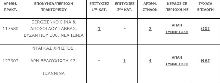 Επίσης, ένα (1) τυχερό δελτίο βρέθηκε στην 2η κατηγορία (6) το οποίο κερδίζει το ποσό των €25.000,00.