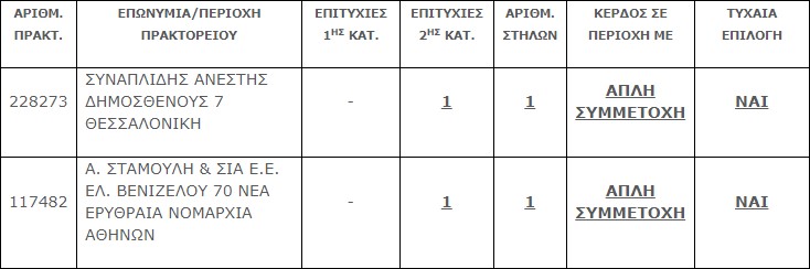 Επίσης στην δεύτερη κατηγορία (6) βρέθηκαν δύο (2) τυχερά δελτία που το καθένα κερδίζει το ποσό των € 25.000,00.