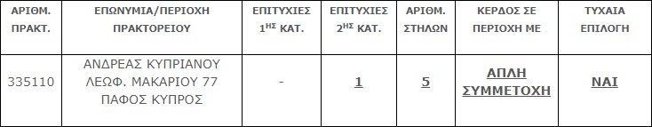 Επίσης στην δεύτερη κατηγορία (6) βρέθηκε ένα (1) τυχερό δελτίο που κερδίζει το ποσό των € 25.000,00.