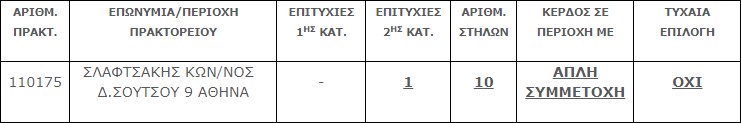 Επίσης στην δεύτερη κατηγορία (6) βρέθηκε ένα (1) τυχερό δελτίο που κερδίζουν το ποσό των € 25.000,00.
