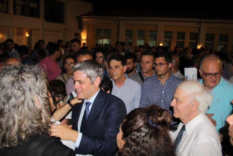 Μετά την ομιλία του ο κόσμος κατενθουσιασμένος περίμενε τον υποψήφιο βουλευτή να τον χαιρετίσει, να τον αγκαλιάσει και του ευχηθεί καλή επιτυχία.