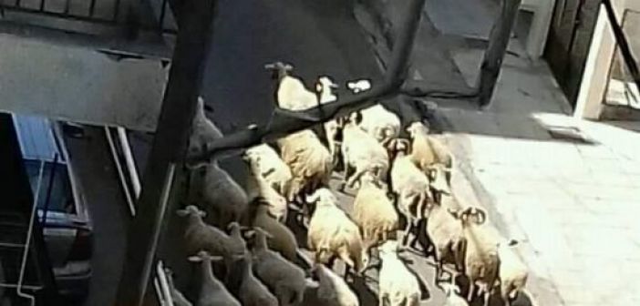 Πρόβατα ψάχνουν τροφή στους δρόμους του Αγρινίου (Βίντεο)