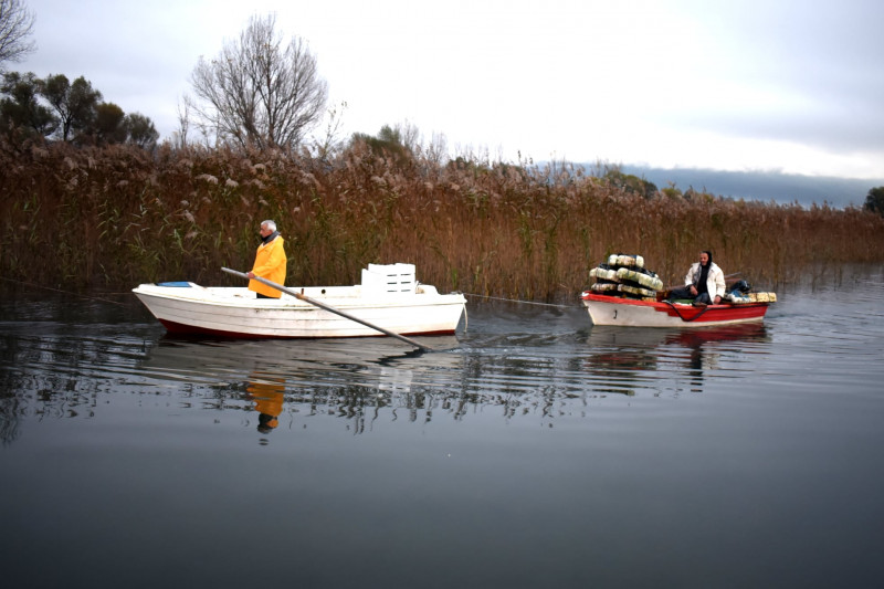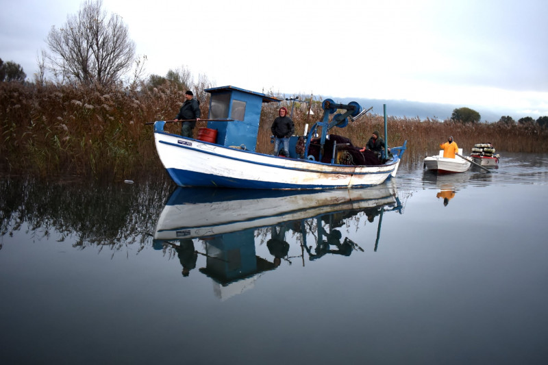 Καθημερινές πρωινές εικόνες στην λίμνη Τριχωνίδα με την επιστροφή των ψαράδων μετά την νυχτερινή προσπάθειά τους για το ψάρεμα της αθερίνας.