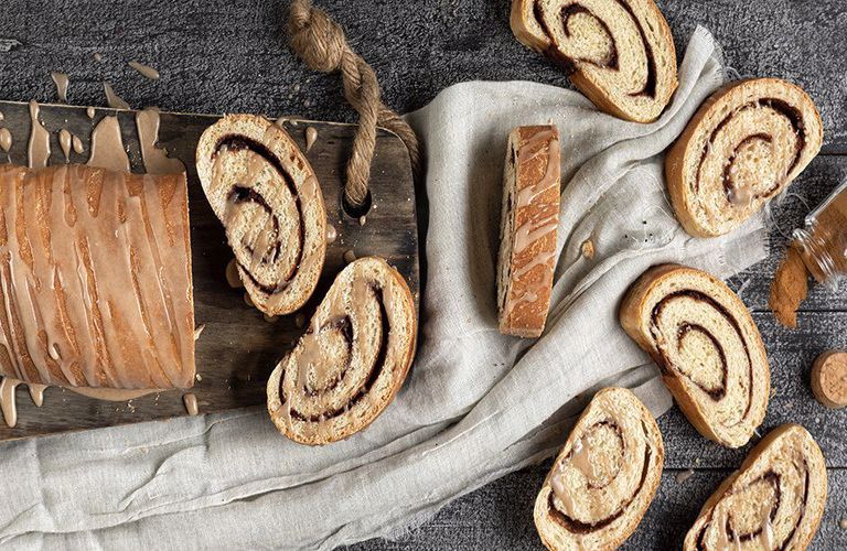 - Περιχύνουμε με το γλάσο το ψωμί και κόβουμε σε φέτες.