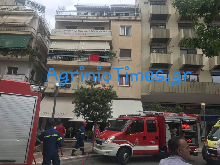 Πυρκαγιά στον τέταρτο όροφο πολυκατοικίας στην πλατεία δημοκρατίας του Αγρινίου.