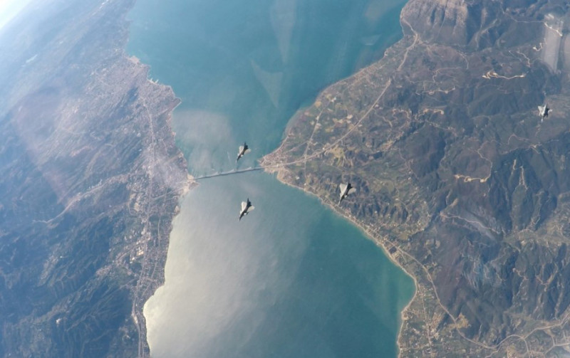 Στη συνέχεια, πέταξαν πάνω από την την εμβληματική γέφυρα «Χαρίλαος Τρικούπης» που ενώνει το Ρίο με το Αντίρριο και τον Ιερό βράχο της Ακρόπολης στην Αθήνα, ολοκληρώνοντας το ταξίδι τους στο νέο τους σπίτι, την αεροπορική βάση στην Τανάγρα.
